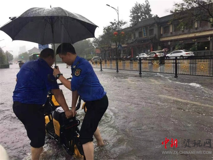 7月20日,開封暴雨第一天,宋門街道城管中隊14人全部堅守在防汛一線。全體人員不辭辛勞站在街道轄區(qū)大街小巷查看道路積水情況,指揮通行車輛行人繞行,提醒行人注意安全。