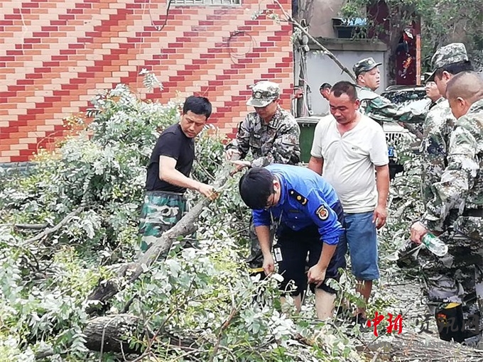7月22日凌晨3時(shí),經(jīng)排查,宋門街道南街9號(hào)因連續(xù)暴雨導(dǎo)致一棵直徑80余公分老樹傾倒,嚴(yán)重威脅周邊居民人身財(cái)產(chǎn)安全,街道領(lǐng)導(dǎo)班子收到信息后第一時(shí)間帶領(lǐng)抗汛救災(zāi)隊(duì)伍到達(dá)現(xiàn)場(chǎng),并立即與供電公司商定處置預(yù)案。 確定方案后,街道黨工委協(xié)調(diào)聯(lián)動(dòng)河南四建基干民兵連部分民兵、區(qū)城管局、街道民兵應(yīng)急排、城管中隊(duì)等單位組織迅速開展倒樹處置工作。一部分民兵在南街9號(hào)南北路口拉起警戒線,提醒附近居民群眾繞行;區(qū)城管局進(jìn)行現(xiàn)場(chǎng)作業(yè),消除隱患;另一部分民兵對(duì)傾倒大樹進(jìn)行現(xiàn)場(chǎng)清理。工作緊張有序,經(jīng)過近2個(gè)小時(shí)的艱苦奮戰(zhàn),終于把傾倒大樹的安全隱患排除。接著河南四建基干民兵又來到空分西區(qū)7號(hào)院內(nèi)為居民進(jìn)行積水抽排工作。