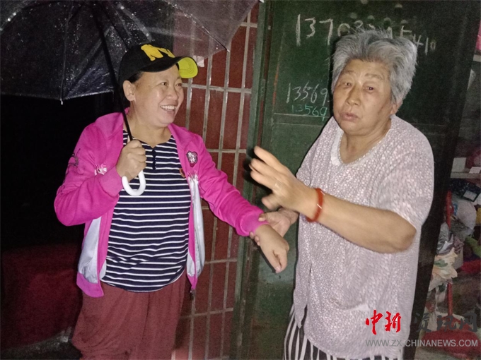 中街社區(qū)黨委書記帶領工作人員及城管中隊人員連夜轉移家中積水的居民安全送至兒女家中或安置在住房較多的鄰居家中,并聯(lián)系老舊小區(qū)改造施工方抽排小區(qū)內積水。