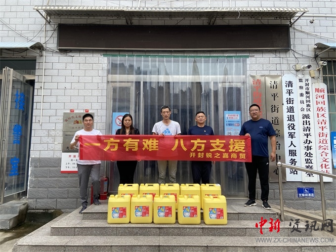 開封市順河回族區(qū)愛心企業(yè)銳之嘉商貿(mào)向清平街道捐贈消毒物資