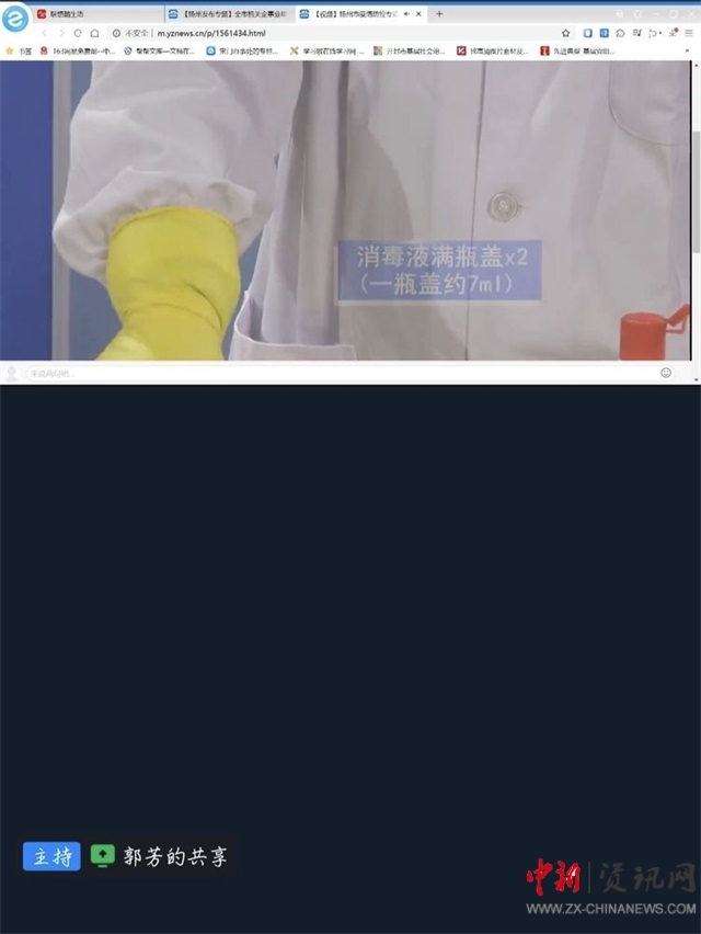 學(xué)習(xí)中,大家在微信群內(nèi)觀看“揚(yáng)州市疫情防控專項(xiàng)培訓(xùn):消毒液配比”科普視頻。自新冠肺炎疫情防控工作開展以來,宋門街道全體黨員干部積極爭當(dāng)防控“第一人”,沖在抗疫“第一線”,戰(zhàn)好服務(wù)“第一崗”,以擔(dān)當(dāng)精神和過硬作風(fēng),筑牢抗疫紅色堡壘。街道組宣統(tǒng)委員郭芳以“視頻對(duì)話”方式,向大家強(qiáng)調(diào):當(dāng)前疫情形勢依舊嚴(yán)峻,大家在做好疫情防控工作的同時(shí)要做好自身防護(hù)。