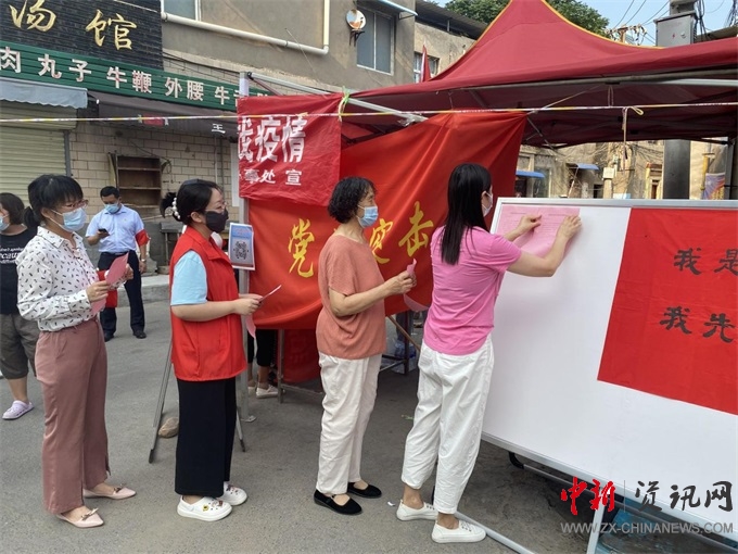 “在黨和人民最需要我們的關鍵時刻,我自愿加入疫情防控黨員突擊隊......”黨日活動中民心社區(qū)臨時黨支部19名黨員將個人請戰(zhàn)書粘貼在一起,并面對黨旗莊嚴宣誓,將用自己的責任和決心,踐行共產(chǎn)黨員在“戰(zhàn)疫時刻”應有的政治擔當。曹門街道數(shù)百名黨員正在以實際行動踐行黨員義務,在各自崗位上為抗疫做出積極貢獻。