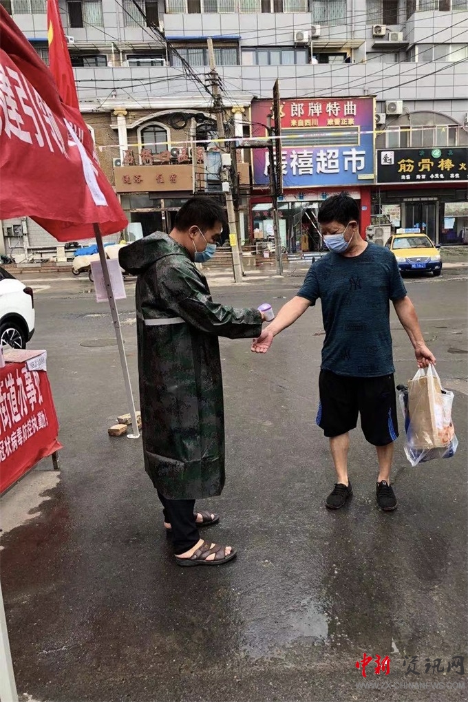 中新河南網(wǎng)8月22日電(付海濤 劉記)8月22日,面對突如其來的降雨,開封市順河回族區(qū)審計局在民心社區(qū)防疫值班的同志們?nèi)詧允卦诜酪咭痪,對來往的行人進(jìn)行排查。