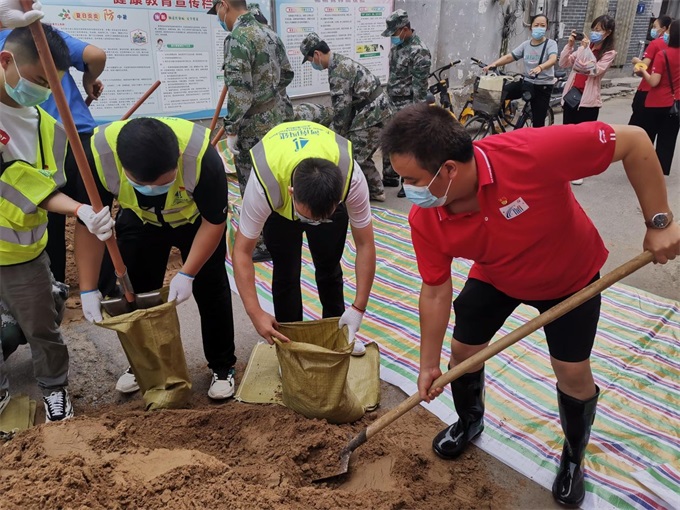 中新河南網(wǎng)8月23日電(付海濤 劉記)據(jù)氣象預(yù)報(bào),受低渦影響,我市將于8月22日10時(shí)開(kāi)啟暴雨模式,為確保轄區(qū)居民群眾安全度汛,保障其生命財(cái)產(chǎn)安全,順河回族區(qū)宋門(mén)街道黨工委未雨綢繆、防范未然,于8月21日晚召開(kāi)防汛備汛工作部署會(huì),22日早上7點(diǎn)帶領(lǐng)街道辦事處、社區(qū)、民兵、城管中隊(duì)、省四建30余人,到易倒灌水地點(diǎn)-宋門(mén)街道南街南口,裝沙袋、壘沙袋墻,為居民群眾筑起暖心“防汛墻”,筑牢安全“防汛堤”,讓黨旗在防汛一線(xiàn)高高飄揚(yáng)。