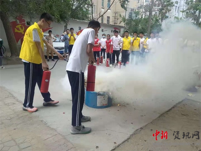社區(qū)志愿者對如何應(yīng)對突發(fā)火災(zāi),如何實現(xiàn)火災(zāi)自救及逃生方法等消防安全常識進行了細致的講解。隨后,社區(qū)志愿者模擬“火災(zāi)”現(xiàn)場,并為師生演示了正確使用消防設(shè)備設(shè)施的操作程序,并讓學(xué)生分組逐個實地操作滅火器,讓學(xué)生掌握正確的使用方法。