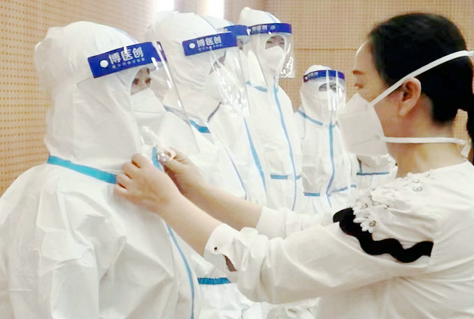 “大家一定要注意,我們面對(duì)的‘敵人’是非常狡猾的,它們看不見、摸不著,一個(gè)細(xì)節(jié)沒有注意,可能就會(huì)功虧一簣,還沒有進(jìn)入戰(zhàn)斗,就已經(jīng)退出戰(zhàn)斗……”培訓(xùn)會(huì)上,多次參加疫情防控、有豐富經(jīng)驗(yàn)的縣人民醫(yī)院感控科科長(zhǎng)侯風(fēng)琴,為即將奔赴戰(zhàn)場(chǎng)的勇士們做防護(hù)培訓(xùn),一身防護(hù)服似乎就是他們戰(zhàn)斗的“盔甲”。