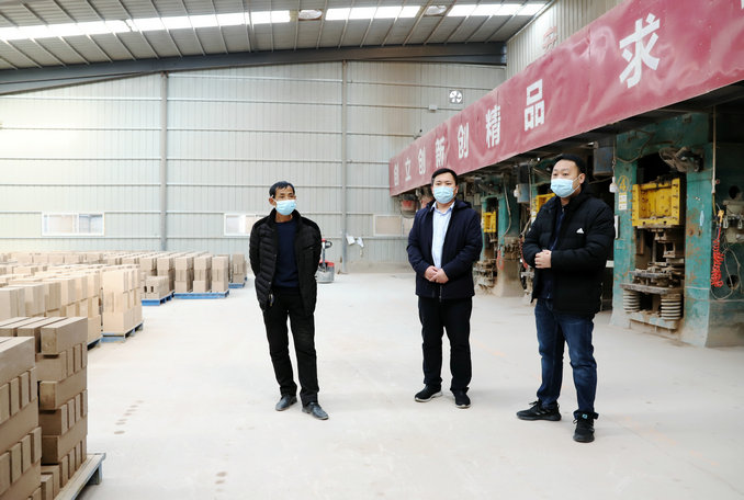 在美華耐火材料有限公司,孫志強(qiáng)與企業(yè)負(fù)責(zé)人一起來來到生產(chǎn)車間,與一線工作人員親切交談,詳細(xì)了解工作人員個人防護(hù)、消毒消殺和春節(jié)期間生活保障等情況,叮囑他們在工作和生活中做好疫情防護(hù),注意自身安全。在禹州市宏瑞耐火材料有限公司,孫志強(qiáng)與企業(yè)負(fù)責(zé)人一起研究解決企業(yè)復(fù)工復(fù)產(chǎn)中的員工返崗、企業(yè)資金、車間改造、疫情防控等方面問題,指導(dǎo)企業(yè)細(xì)化、完善復(fù)工方案和防控預(yù)案。