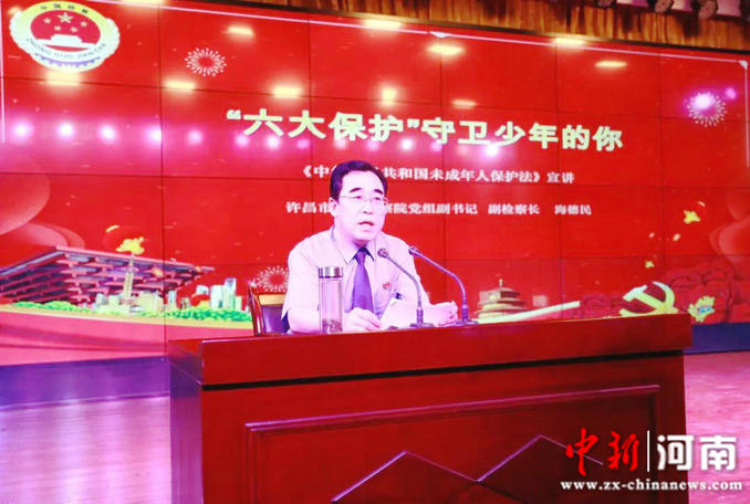 許昌市人民檢察院副檢察長海德民到許昌市毓秀路小學(xué)講授新修訂《未成年人保護(hù)法》