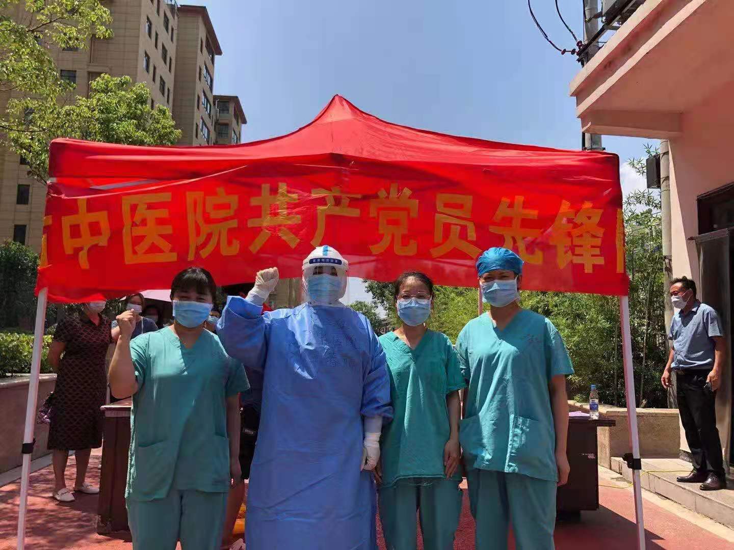 她和大家身穿厚厚的防護(hù)服長(zhǎng)達(dá)6個(gè)小時(shí),當(dāng)時(shí)防護(hù)服內(nèi)全身濕透,汗水順著身體一直往下流,雙手因?yàn)楹顾莸陌l(fā)白,還出現(xiàn)悶氣,心慌,頭暈?zāi)X脹的癥狀,感覺(jué)隨時(shí)要倒下。但是,看到市民對(duì)醫(yī)務(wù)人員的肯定和認(rèn)可,內(nèi)心還是很欣慰。