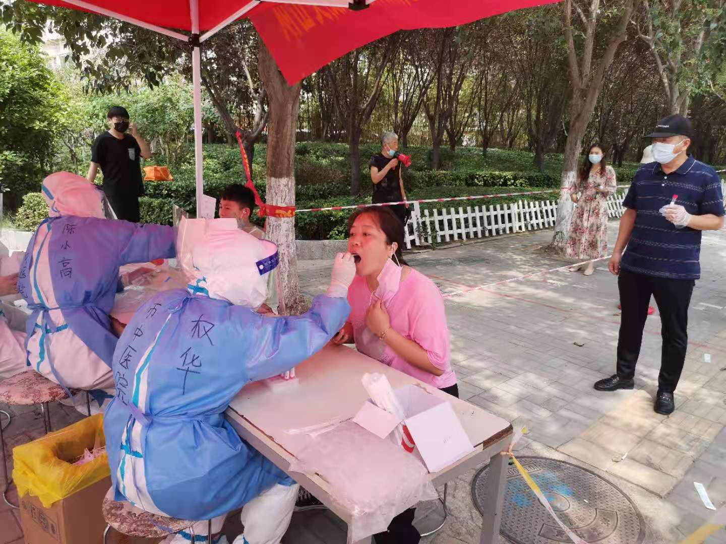 中新河南網(wǎng)商丘8月12日電(刁玉磊 通訊員 賈紅霞)8月2日下午5時(shí)許,商丘市中醫(yī)院工作群里收到一條消息:下班先別走,醫(yī)院緊急調(diào)派核酸采樣員,晚上進(jìn)行穿脫防護(hù)服和采樣方法培訓(xùn)。70余名行政人員和近300名醫(yī)護(hù)人員組成的商丘市中醫(yī)院核酸采樣突擊隊(duì)成立了。權(quán)華成為了核酸檢測突擊隊(duì)的一員,并成為了商丘市中醫(yī)院核酸檢測突擊隊(duì)第八組的組長。