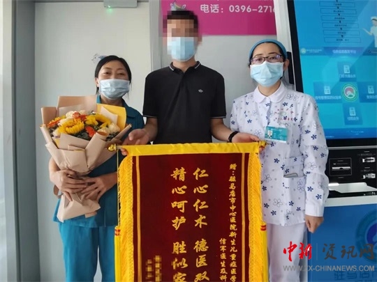 中新河南網(wǎng)駐馬店9月1日電(通訊員 吳靖 陳思妤)近日,一對(duì)夫婦抱著雙胎寶寶來(lái)到駐馬店市婦女兒童醫(yī)院新生兒重癥醫(yī)學(xué)科,將一面錦旗送到科室醫(yī)生信軍手中。這是一面普通的錦旗,卻飽含了家屬對(duì)新生兒重癥醫(yī)學(xué)科全體醫(yī)護(hù)人員的感激之情。懷中的兩個(gè)寶寶活潑可愛,明亮迷人的大眼睛總不停地四處打量著世界,誰(shuí)能相信她們是一對(duì)早產(chǎn)患兒,曾經(jīng)生命危在旦夕……