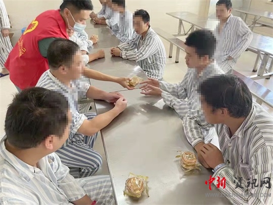 中新河南網(wǎng)駐馬店9月21日電(通訊員 王杏 周甜)金秋送爽,丹桂飄香。一年一度的中秋佳節(jié),萬家團圓,共享天倫,但精神病患者因其疾病特點,治療周期長,很多患者住院時間跨度較大,因病情尚未穩(wěn)定而不能回家過節(jié),為了能讓患者感受到醫(yī)院大家庭的溫情和關懷,度過一個溫馨的中秋,市第二人民醫(yī)院老年精神科男病區(qū)工作人員為住院患者送上了精美的月餅和新鮮的蘋果,讓患者感受到了醫(yī)院的關愛和溫暖。