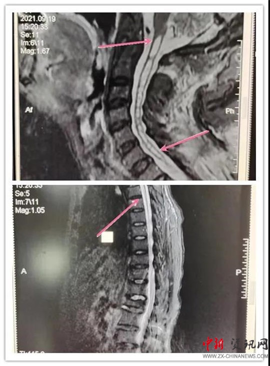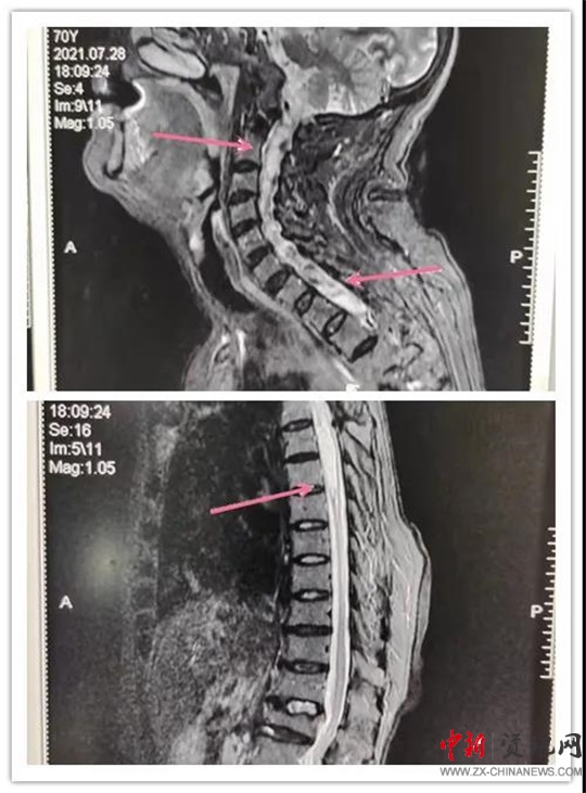 患者,女,70歲,六年前患脊髓空洞癥在某醫(yī)院行“脊髓空洞蛛網(wǎng)膜下腔分流手術(shù)”后病情好轉(zhuǎn)。近段時間,因“后肩部疼痛,無痛溫覺喪失,雙下肢疼痛、無力逐漸加重”癥狀加重,來汝南縣人民醫(yī)院就診,行MR檢查診斷為“頸胸脊髓空洞”。神經(jīng)外科副主任沈明輝認真研究了患者的病情和 MR片子,認為手術(shù)可行,隨即收住患者到科室;颊呷朐汉,完善了術(shù)前檢查,由于患者年事已高,患有高血壓、心臟病等疾病,使病情更加復(fù)雜,手術(shù)難度風險進一步加大。手術(shù)團隊組織了全科會診,對患者手術(shù)情怳進行了分析。如果不做手術(shù),病情進一步發(fā)展,患者雙下肢會截癱,再做手術(shù)也很難恢復(fù)。在得到患者家屬的理解和支持后,根據(jù)患者的病情,手術(shù)團隊反復(fù)討論術(shù)中可能出現(xiàn)的問題:完善圍手術(shù)期應(yīng)急預(yù)案,制定精準的治療及手術(shù)方案,擇期為患者成功實施了“頸胸脊髓空洞胸腔引流”手術(shù)。術(shù)后患者雙下肢肌力明顯好轉(zhuǎn),正在康復(fù)中。