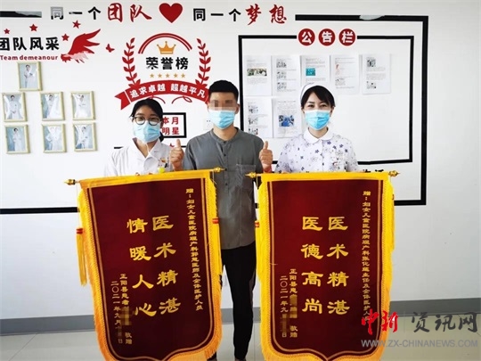 中新河南網駐馬店9月27日電(通訊員 吳靖 陳思妤 郭慧)9月25日上午,駐馬店市中心醫(yī)院婦女兒童醫(yī)院病理產科病房內一片其樂融融的景象。產婦劉女士的丈夫將兩面錦旗送到科室醫(yī)護人員手中說:“你們這里的服務和技術真是好,我老婆到這里生孩子選對了地方,這里環(huán)境優(yōu)美,醫(yī)生責任心強,技術力量過硬,送錦旗也難以表達我的謝意。”