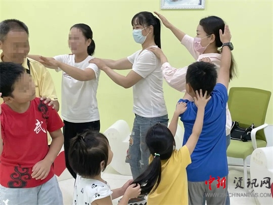 祁博老師帶領(lǐng)家長和孩子們進行親子關(guān)系的團體輔導(dǎo),家長和孩子們拉近了彼此的距離;孩子們提高了人際交往能力,在合作中達成了默契,孩子們既收獲了歡笑,也收獲了友誼。