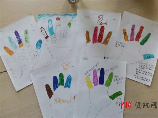 在工作人員的組織下,患者有序走進(jìn)心理治療室圍坐在一起。首先,由工作人員帶領(lǐng)大家做一個(gè)簡單的手指操,既活躍了氣氛,又消除了大家的緊張情緒。隨后大家逐個(gè)進(jìn)行自我介紹,并用畫圖的方式畫下自己的手,在護(hù)士講解手指所代表的含義之后,由患者自己給畫的手指涂上顏色。在所有患者涂完色之后,每個(gè)人都根據(jù)自己的情況介紹了自己的繪畫。