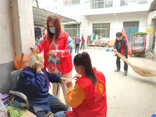 每到一戶老人家中,志愿者們有的給老人梳頭發(fā)、剪指甲,有的直接扛起掃把掃起地來,有的在為老人們疊被子、鋪床,暖心舉動把微涼的秋意輕輕拂去,留在志愿者和老人們臉上的笑意格外美麗。