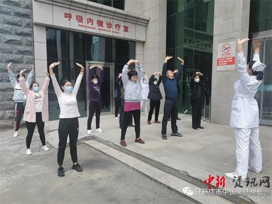 內(nèi)科樓外,呼吸與危重癥醫(yī)學(xué)科的醫(yī)護(hù)人員在科主任劉中友的帶領(lǐng)下和老年人一起練起了八段錦和易筋經(jīng)。他們動(dòng)作有力,松弛有度,眼神專注,一動(dòng)一靜之中展現(xiàn)運(yùn)動(dòng)的魅力,現(xiàn)場(chǎng)掌聲不斷,一些圍觀的老人和家屬也躍躍欲試。