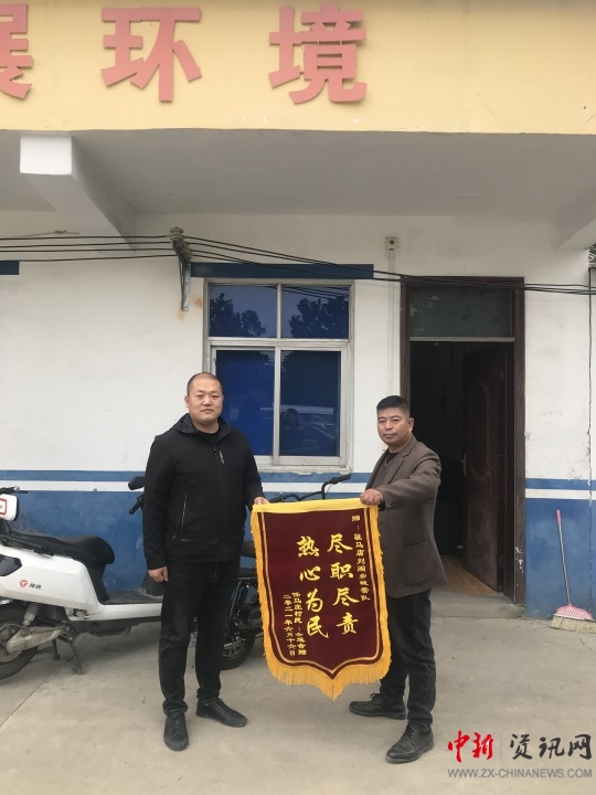 中新河南網(wǎng)駐馬店10月18日電(通訊員 楊凱華)近日,駐馬店市城鄉(xiāng)一體化示范區(qū)劉閣街道辦事處任馬莊村民余連合將一面印有“盡職盡責(zé),熱心為民”的錦旗送到劉閣街道辦事處城管執(zhí)法中隊(duì),并再次對城管中隊(duì)隊(duì)員熱情指導(dǎo)其合法建房,及時(shí)解決其全家生活居住問題表示衷心感謝。