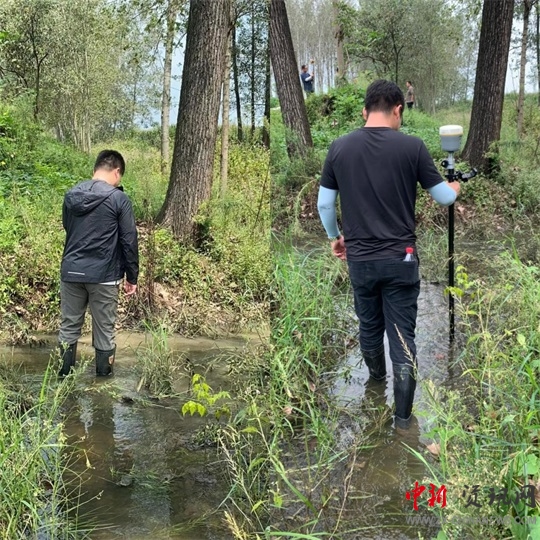 平輿縣自然資源局土地勘測所對老王崗鄉(xiāng)河道進(jìn)行測量放樣