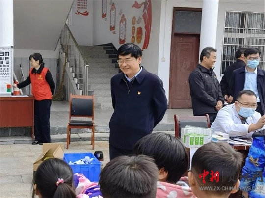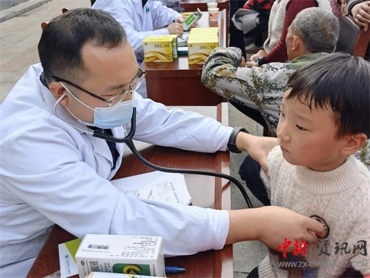 醫(yī)務(wù)人員為譚園村小學生體檢