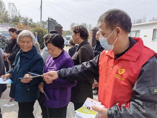 駐馬店市第二人民醫(yī)院志愿者為問診群眾發(fā)放健康知識宣傳資料。
