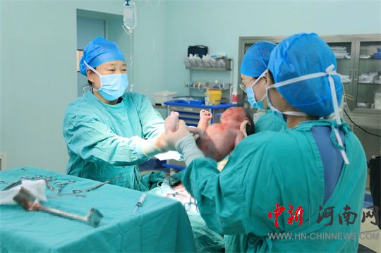 制定手術(shù)方案、安排患者進(jìn)手術(shù)室、清潔消毒、換手術(shù)衣……一連串準(zhǔn)備下來(lái),張化蓮已嚴(yán)陣以待,此時(shí)李女士出血如涌泉,常規(guī)止血方法無(wú)效,張化蓮果斷實(shí)施剖腹探查術(shù)。術(shù)中發(fā)現(xiàn)子宮下段前壁疤痕處被胎盤植入穿透肌層,導(dǎo)致子宮破裂,出血兇猛,膀胱分離面活動(dòng)性出血,張化蓮多措并舉,耐心分離粘連組織,縫扎止血,結(jié)扎子宮血管,修補(bǔ)子宮,保住了患者的生育能力。直到手術(shù)結(jié)束,手術(shù)室全體醫(yī)護(hù)成員才松了口氣。此時(shí)天光漸曉,雖疲憊不堪,但大家臉上都露出了喜悅的笑容。
