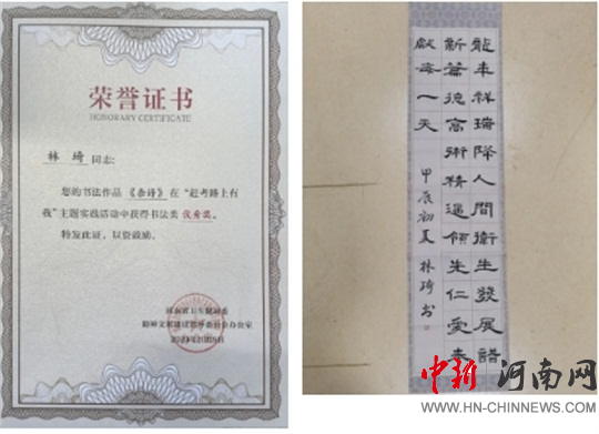 中新河南網(wǎng)駐馬店11月20日(通訊員:吳靖)近日,在河南省衛(wèi)生健康委組織的“趕考路上有我”主題實(shí)踐活動(dòng)中,駐馬店市中心醫(yī)院職工積極參與,用公益廣告、書法、攝影等多種形式展現(xiàn)了衛(wèi)生健康工作者的精神風(fēng)貌和時(shí)代風(fēng)采,并獲得多個(gè)獎(jiǎng)項(xiàng)。
