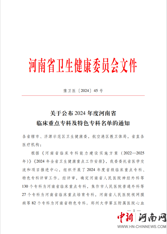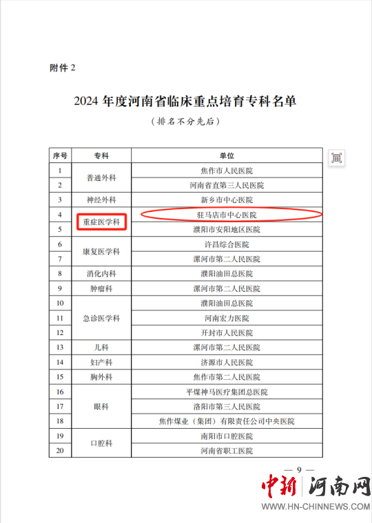 駐馬店市中心醫(yī)院新增2個省級臨床重點專科和1個省級臨床重點培育學(xué)科