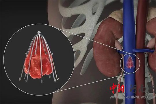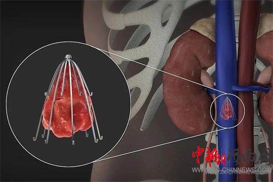因此在下游的位置——下腔靜脈安裝一個(gè)過濾器,攔截血栓,通過血流,就可以預(yù)防肺栓塞,保護(hù)患者生命。