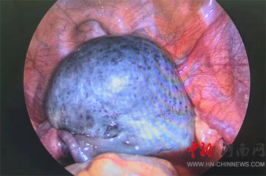 旭旭的左側(cè)附件蒂部因扭轉(zhuǎn)而致密,呈現(xiàn)出紫黑色,可能已經(jīng)淤血壞死,需要立刻進行手術(shù)。