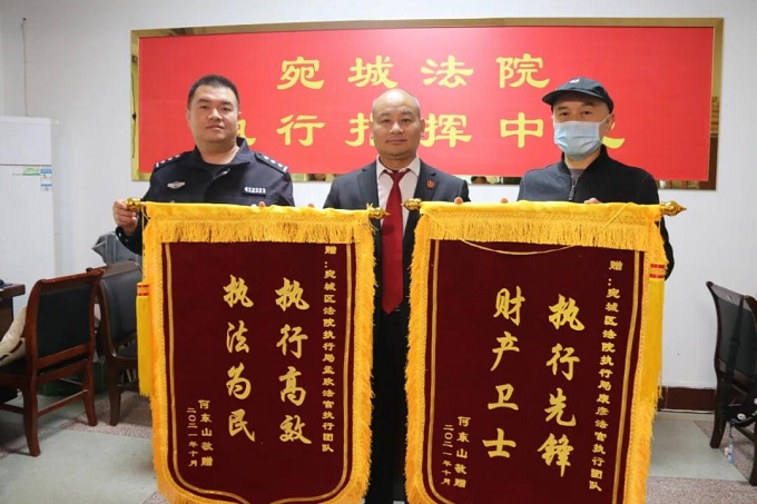 宛城法院:高效執(zhí)行獲贈兩面錦旗