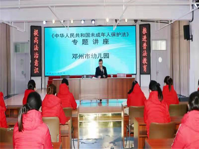 中新河南網(wǎng)12月31日電(李克選 朱小旭、張中梅)為營(yíng)造法治、文明、和諧的校園育人環(huán)境,12月31日,鄧州法院審委會(huì)委員、民一庭負(fù)責(zé)人胡殿來(lái)到其擔(dān)任法治副校長(zhǎng)的鄧州市幼兒園開展送法進(jìn)校園活動(dòng)。
