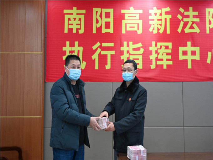 中新河南網1月5日電(李克選 王憲 王佳琪)執(zhí)行是公平正義最后一道防線的最后一個環(huán)節(jié)。南陽高新區(qū)法院在執(zhí)行案件過程中,始終貫徹執(zhí)行“善意文明執(zhí)行”理念,扎實開展“我為群眾辦實事”實踐活動。2022年1月5日,南陽高新區(qū)法院成功執(zhí)結一起民間借貸糾紛案件,被執(zhí)行人主動履行執(zhí)行款30余萬元。