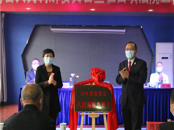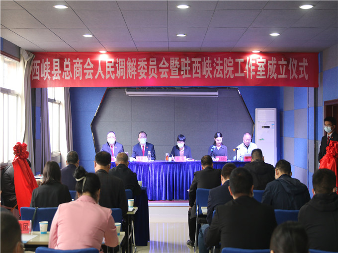 中新河南網(wǎng)5月10日電(李克選 謝叢晨 王晶雅)為貫徹落實(shí)省、市、縣關(guān)于支持民營(yíng)經(jīng)濟(jì)發(fā)展的方針政策,充分發(fā)揮工商聯(lián)及所屬商會(huì)組織優(yōu)勢(shì)和人民調(diào)解基礎(chǔ)性作用,預(yù)防化解民營(yíng)經(jīng)濟(jì)領(lǐng)域矛盾糾紛,5月10日,河南省南陽(yáng)市西峽縣總商會(huì)人民調(diào)解委員會(huì)暨駐西峽法院工作室揭牌儀式舉行。西峽縣委常委、統(tǒng)戰(zhàn)部部長(zhǎng)李雪,縣法院黨組書(shū)記、院長(zhǎng)肖新征,縣司法局局長(zhǎng)喬琰,縣法院黨組成員王宏釗,全縣各行業(yè)商會(huì)代表及律師代表參加會(huì)議。會(huì)議由西峽縣政協(xié)副主席、工商聯(lián)主席杜書(shū)玲主持。