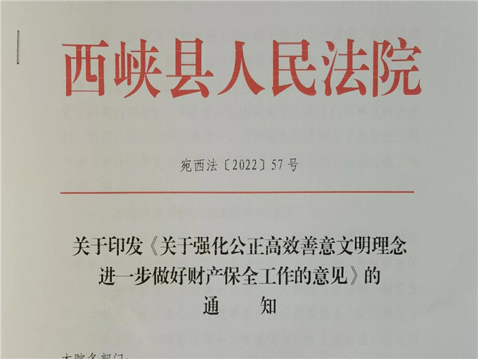西峽法院印發(fā)《工作意見(jiàn)》 做好財(cái)產(chǎn)保全工作