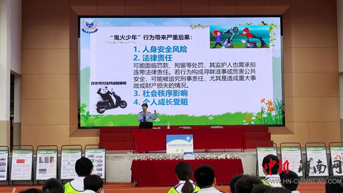 交通安全法制教育環(huán)節(jié),一段“鬼火少年”違規(guī)飆車引發(fā)事故的視頻,讓現(xiàn)場(chǎng)唏噓。王妙麗結(jié)合交通法規(guī),詳解違規(guī)騎行面臨的法律責(zé)任與安全風(fēng)險(xiǎn),告誡學(xué)生摒棄僥幸心理,遵守交通規(guī)則。