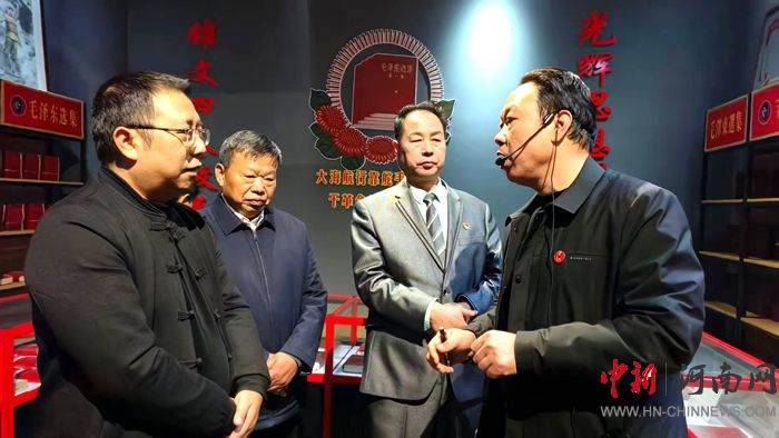 當(dāng)日下午,馬繼民、劉軍祥、鄒虹、雷禮雅、張樹全、李輝義、喬新建、付華等一行,懷著對(duì)先輩們的崇敬之情,齊聚河南確山紅色記憶館,認(rèn)真聽取館長(zhǎng)姚真保的情況介紹,駐足凝視每一件館藏。紅色記憶館內(nèi),一件件飽經(jīng)歲月洗禮的歷史文物、一幅幅生動(dòng)鮮活的珍貴照片、一段段感人至深的英勇事跡,全方位、多角度地展現(xiàn)了確山地區(qū)波瀾壯闊的革命歷程和先烈們?yōu)閲要?dú)立、民族解放所做出的巨大貢獻(xiàn)。