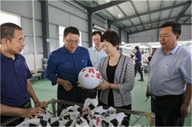 脫貧摘帽不是終點(diǎn),而是新的起點(diǎn)。來到肖營村產(chǎn)業(yè)園時(shí),生產(chǎn)體育器材的流水線上,村民們一字排開做著自己的工作,流水線的一頭是各種布料,另一頭就是五顏六色的足球、手球成品?粗|(zhì)地上乘、外觀靚麗的足球,不敢相信這個(gè)小小的村辦企業(yè),居然能生產(chǎn)出如此高水平的體育用品。據(jù)創(chuàng)業(yè)園負(fù)責(zé)人介紹,他們的體育產(chǎn)品銷往全國各地,還為一些名牌企業(yè)代加工部分成品和半成品,年銷售額可達(dá)近千萬元。
