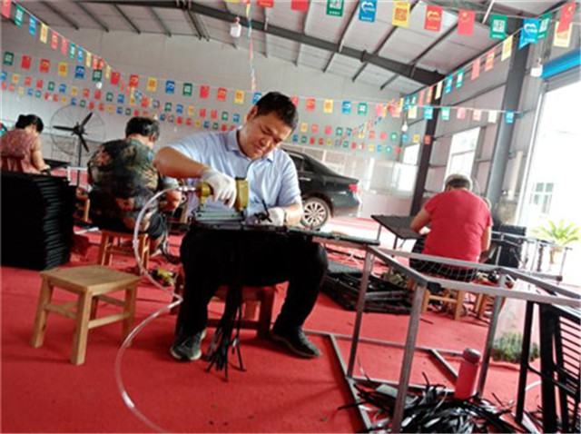 在另一個(gè)藤編車間,由于實(shí)行的是訂單化計(jì)件生產(chǎn)機(jī)制,經(jīng)過培訓(xùn)的村民們,甚至可以把原料拿回家,利用閑暇時(shí)間藤編各類躺椅和家具。隔壁的廠房則是過塑印花車間,承接各類裝飾、廣告印制,也安置了不少村民就業(yè)。這幾個(gè)生產(chǎn)車間,集中體現(xiàn)了各級政府對肖營村產(chǎn)業(yè)扶貧的優(yōu)異成果,真正把扶貧模式由“輸血”變?yōu)榱?ldquo;造血”。
