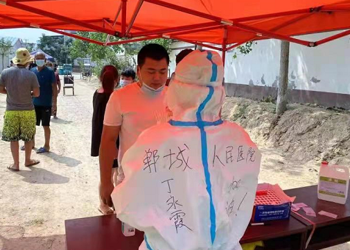 “在商丘的這幾日里,根據(jù)工作需要,不停地在轉換工作地點,從虞城民安社區(qū)馬莊、丁樓到商丘市區(qū)建業(yè)香檳圣園、建業(yè)•公園里......工作中,一直要穿著密不通風的防護服,熱的喘不過來氣,頭暈目眩。特別對居家隔離重點人群進行核酸檢測采樣時,手里提著消毒液等必備的東西,走步梯,還沒爬到樓上就渾身濕透,每一層樓都是在超越自己,挑戰(zhàn)自己的額體能極限。當然,像我們隊長王坤,我的同事邢艷敏、郭浩、孫永立......每一位醫(yī)務工作者都是一樣的,都在克服一切困難勇敢向前。”