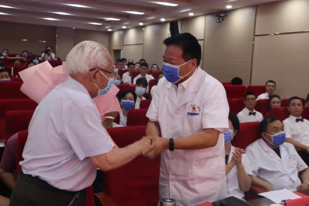 得益于上級(jí)部門的正確領(lǐng)導(dǎo)和廣大患者的認(rèn)可,經(jīng)過一代又一代中心醫(yī)院人的無私奉獻(xiàn)和辛勤付出,商丘市中心醫(yī)院順利走過了40多年的風(fēng)雨歷程。在黨的生日到來之際,退休老黨員、老領(lǐng)導(dǎo)宋新民和周運(yùn)梅為黨的事業(yè)和醫(yī)院建設(shè)送上深深祝福。黨委書記秦功禮代表領(lǐng)導(dǎo)班子為宋新民送上鮮花,希望他一如既往地關(guān)注和支持中心醫(yī)院的發(fā)展。