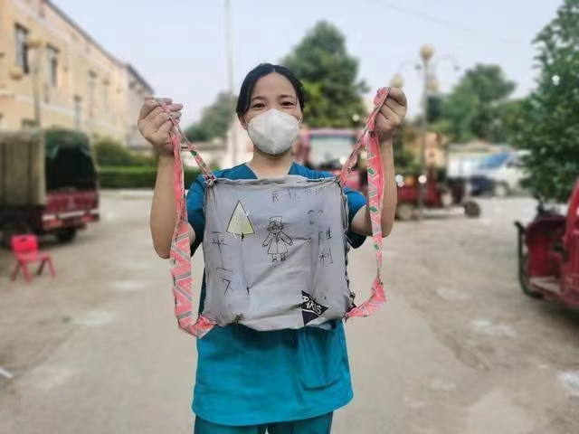 “降溫神器,小背包,是老莊村的志愿者和村民為我們準備的,降溫效果不錯!”李丹丹說,俺們這邊的志愿者,村民都可好,坐著小三輪,不讓多走一步,為了防暑降溫好多村民還都提前在家用礦泉水瓶提前凍好冰水放在背包里。