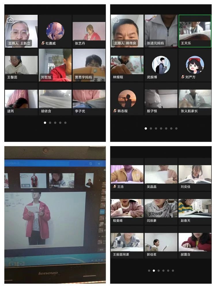 為了盡力調(diào)動學(xué)生學(xué)習(xí)的激情,讓他們能夠自主、自律的學(xué)習(xí),我們想了很多辦法。早上6:20每個釘釘班級群都會給孩子們灌上一碗心靈雞湯。年級部精心制作了很多美味的“心靈雞湯”可以說是每天一碗!鼓勵孩子們?yōu)槲磥矶鴳?zhàn),拿出最好的狀態(tài)上好早讀。視頻早讀結(jié)束后各班均要對前一天的網(wǎng)課情況做一簡單通報,以表揚(yáng)為主激發(fā)同學(xué)們認(rèn)真上課的熱情。為了給學(xué)生營造更好的學(xué)習(xí)氛圍,我們還開展了線上自習(xí)。“視頻午自習(xí)”“視頻晚自習(xí)”年級部為線上自習(xí)命名為“相看兩不厭”。