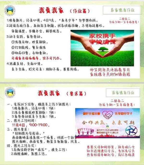 學(xué)生在家,家長是監(jiān)督員。為了加強(qiáng)家長的配合意識,學(xué)生返家的第一個線上家長會上,我們就讓各班傳達(dá)家長監(jiān)督配合的重要性,家長是老師的教育合伙人、同道人,安排家長網(wǎng)課期間做好孩子的后勤保障,為學(xué)生創(chuàng)造一個安靜的學(xué)習(xí)環(huán)境。為了提高家長的教育能力,我們配合家長學(xué)校組織各班家長參與網(wǎng)上學(xué)習(xí),要求家長拍學(xué)習(xí)照片。鼓勵學(xué)生學(xué)習(xí)之余參與家務(wù)勞動,幫家長洗衣、作飯、打掃衛(wèi)生,讓家長體會到咱們的三為教育成果,從而更有信心的參與到學(xué)生管理中來。