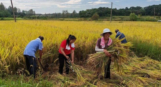 中新資訊網9月28日電(孫顏 汪心怡 楊凱)秋風送爽,稻谷飄香。連日來,信陽市平橋區(qū)明港鎮(zhèn)各村種植的水稻陸續(xù)收割,微風拂過,空氣里彌漫著稻谷的清香。