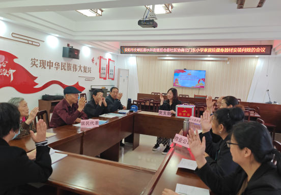 近日,后倉街社區(qū)北門東家屬院老舊小區(qū)改造以后,院內(nèi)雖然干凈、寬敞了,部分居民反映說增加些鍛煉身體的器材更好。圍繞居民生活中的急難愁盼問題,社區(qū)召開了居民協(xié)商議事會。議事會上,社區(qū)書記把收集的問題向大家進(jìn)行了匯報,大家你一言我一語,提出方案,并通過舉手表決。