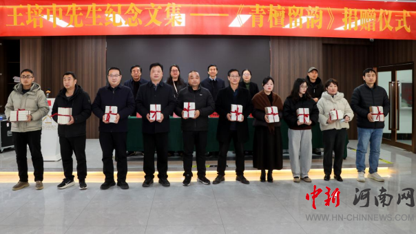中新河南網(wǎng)1月12日電 一冊(cè)文集,滿含無(wú)盡追思;一脈書(shū)香,延續(xù)精神傳承。2026年元月10日上午,王培中先生紀(jì)念文集《青檀留韻》捐贈(zèng)儀式在魯山縣城花園四季酒店隆重舉行。此次活動(dòng)由魯山縣文聯(lián)、縣炎黃文化研究會(huì)、縣作家協(xié)會(huì)聯(lián)合主辦,縣關(guān)工委執(zhí)行主任、縣炎黃文化研究會(huì)會(huì)長(zhǎng)邢春瑜,平頂山市圖書(shū)館副館長(zhǎng)王寶鄭,平頂山市委黨校教授周海清,縣文聯(lián)黨組書(shū)記、主席王慧爍,中國(guó)作協(xié)會(huì)員、縣文聯(lián)原黨組書(shū)記、主席郭偉寧,中國(guó)作協(xié)會(huì)員、縣炎黃文化研究會(huì)執(zhí)行會(huì)長(zhǎng)袁占才,中國(guó)作協(xié)會(huì)員、平頂山市作協(xié)副主席、縣作協(xié)主席葉劍秀等文化界人士、教育工作者、親友代表及媒體記者八十余人齊聚一堂,共同見(jiàn)證這部凝聚深情與敬意的文集正式啟程,走進(jìn)圖書(shū)館、檔案館與校園,成為魯山文化記憶中不朽的篇章。