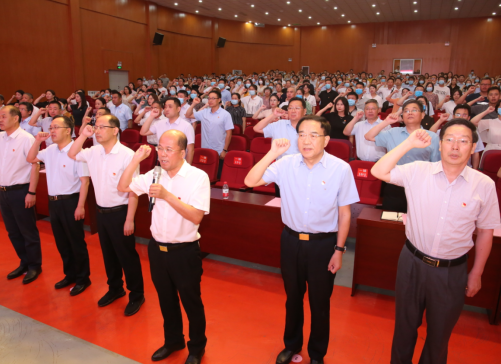 中新河南網(wǎng)6月29日電 2021年6月28日上午,漯河醫(yī)專在源匯校區(qū)隆重召開(kāi)“喜迎建黨100周年?duì)幾鲂聲r(shí)代好黨員”慶“七一”表彰大會(huì),熱烈慶祝黨的生日,表彰近年來(lái)涌現(xiàn)出的先進(jìn)基層黨組織、優(yōu)秀共產(chǎn)黨員和優(yōu)秀黨務(wù)工作者,動(dòng)員和激勵(lì)廣大黨員、干部群眾統(tǒng)一意志、團(tuán)結(jié)拼搏、扎實(shí)工作,為實(shí)現(xiàn)學(xué)校又好又快發(fā)展、全面完成全年各項(xiàng)目標(biāo)任務(wù)而努力奮斗。