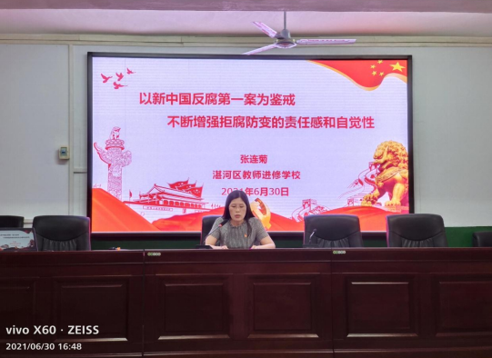 隨后,該校為湛河區(qū)“學習強國”挑戰(zhàn)賽獲獎人員頒獎。結(jié)束后,校黨支部書記、校長張連菊同志給全體黨員上黨課:題目是《以新中國反腐第一案為鑒戒,不斷增強拒腐防變的責任感和自覺性》,學校班子成員和全體黨員干部、教職員工共同聆聽黨課。